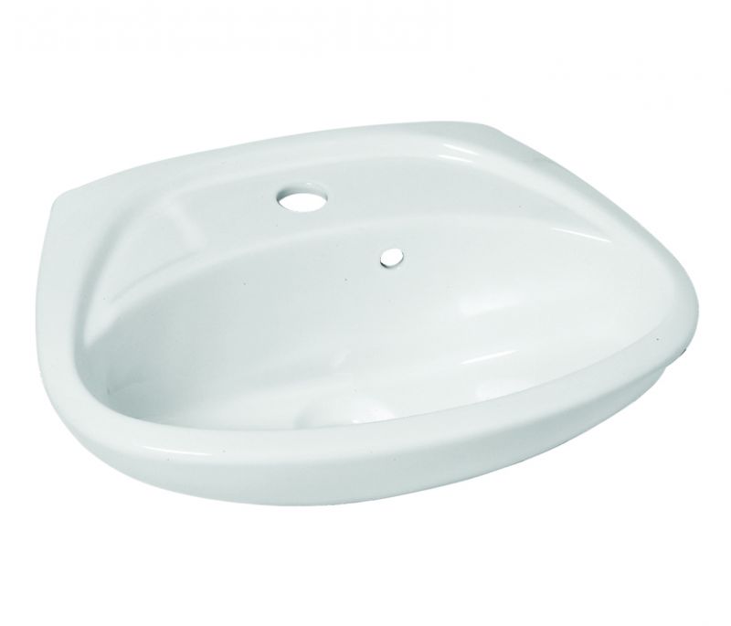 Νιπτήρας πορσελάνης της HUIDA για τοποθέτηση στον τοίχο με στριφώνια.