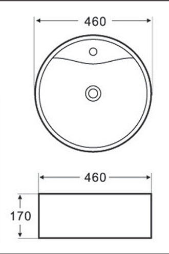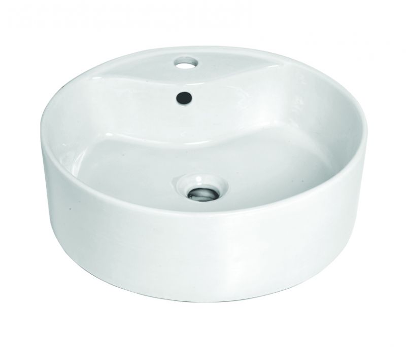 Νιπτήρας πορσελάνης στρογγυλός για τοποθέτηση σε πάγκο με οπή για τοποθέτηση μπαταρίας.
